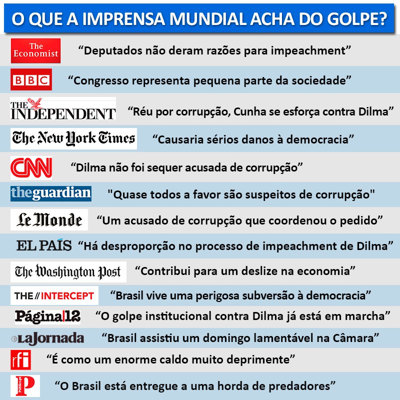 Na dia 21 de Abril, publiquei um artigo no Guardian, no qual abordava questões sobre o impeachment da presidenta Dilma Rousseff e o papel da mídia dominante do Brasil, protagonizado pela Globo.