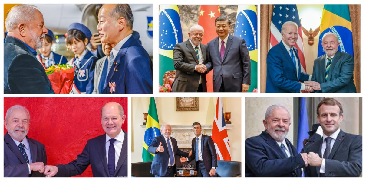 Na Europa, o governo brasileiro dialoga com Emmanuel Macron em Paris e com Charles III e Rishi Sunak em Londres; com Olaf Scholz em Berlim, com Pedro Sánchez em Madri, António Costa em Lisboa, e com Joe Biden, Vladimir Putin, Volodymyr Zelensky, Xi Jinping e outros mais.
