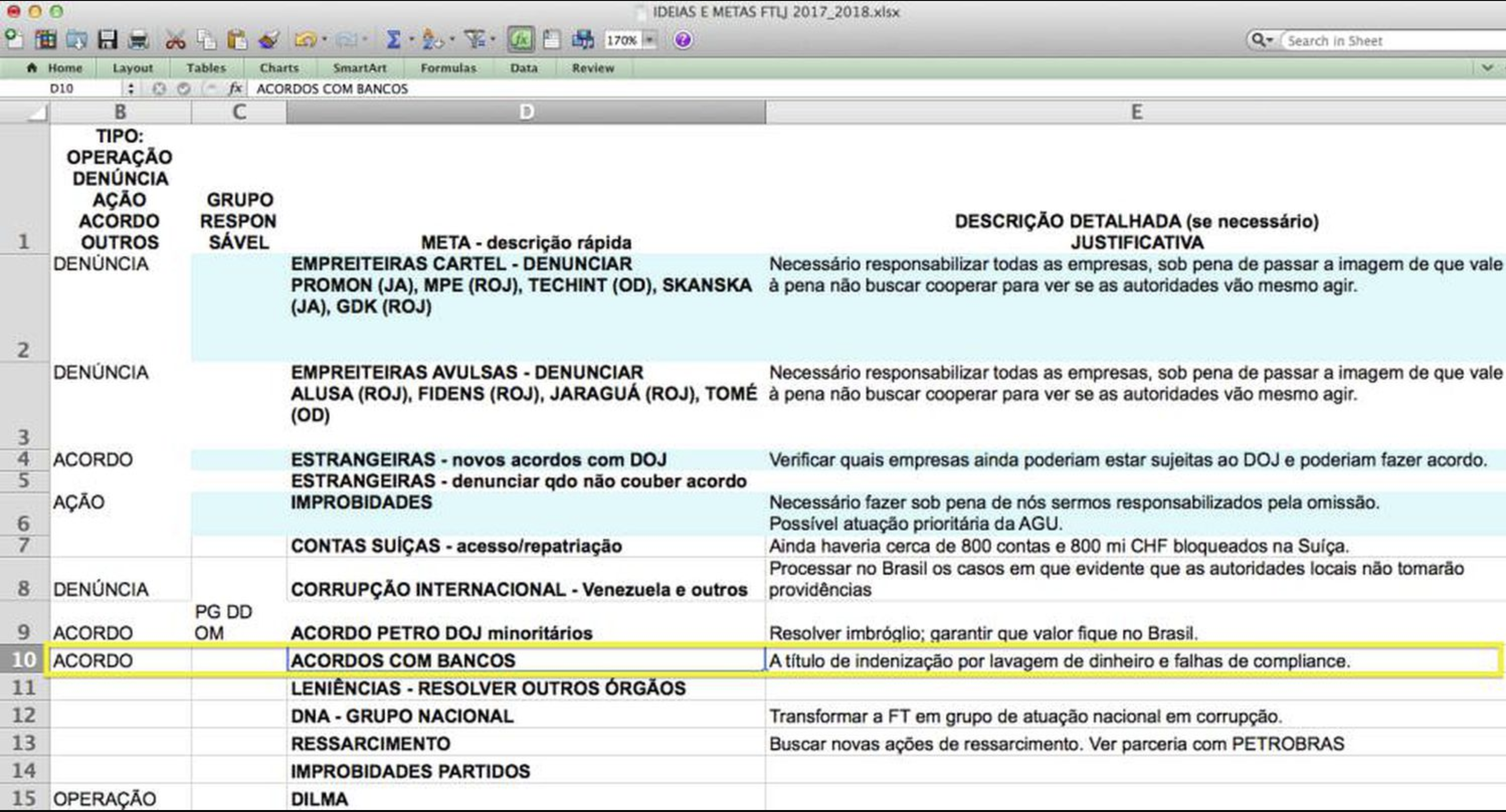 A planilha de metas de Deltan indica que ele pretendia fazer mais acordos assim.