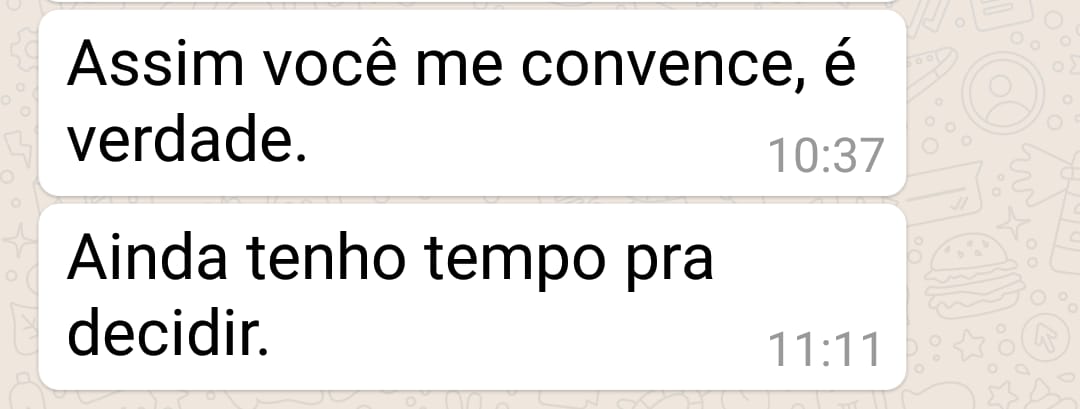 Mas saiba que você é livre para fazer as tuas escolhas e eu respeito.