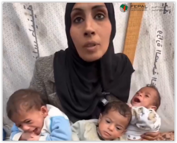 Mãe palestina fala do horror da fome após escapar do norte de Gaza com seus trigêmeos, nascidos 2 meses antes do início do genocídio palestinos pic.twitter.com/Mzx5YBpOnS