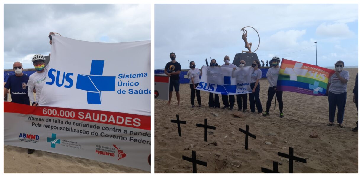 600 mil mortes por Covid-19: médicos cearenses realizaram manifestação nesta sexta, na Praia de Iracema
