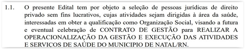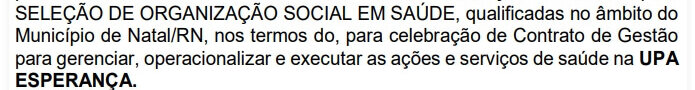 Em 14 de julho, em novo edital, especificou como objeto as quatro Unidades de Pronto Atendimento (UPAs) de Natal: Satélite, Esperança, Potengi e Pajuçara