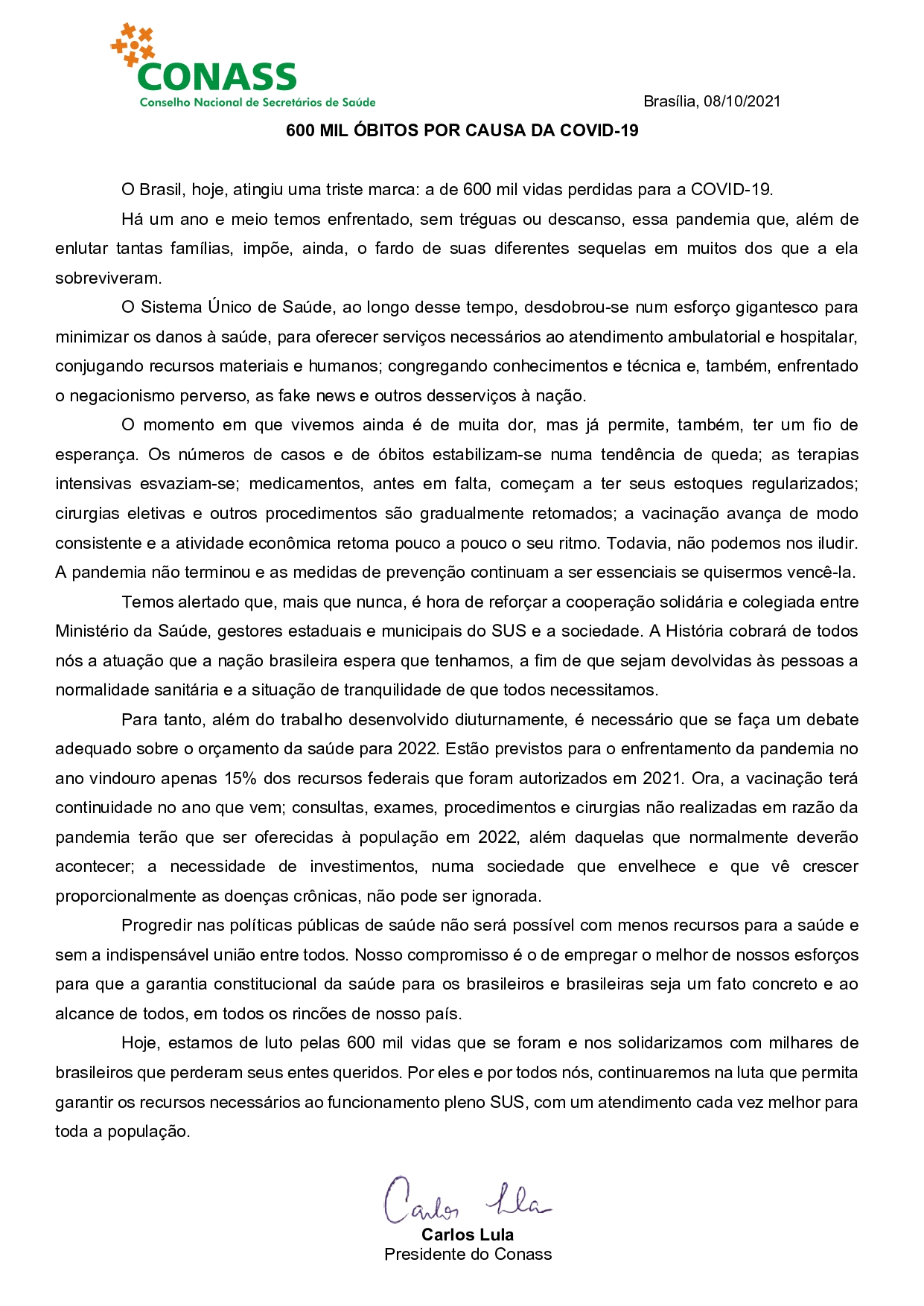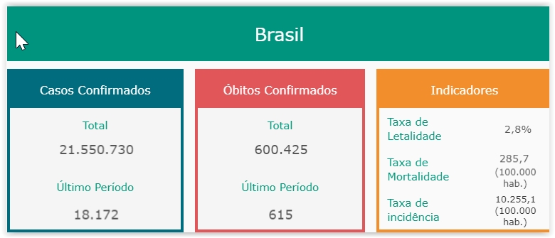 Painel Conass Covid-19: Última atualização às 18h desta sexta-feira, 8 de outubro de 2021