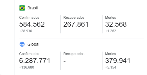 Até agora, foram 584.562 Infectados