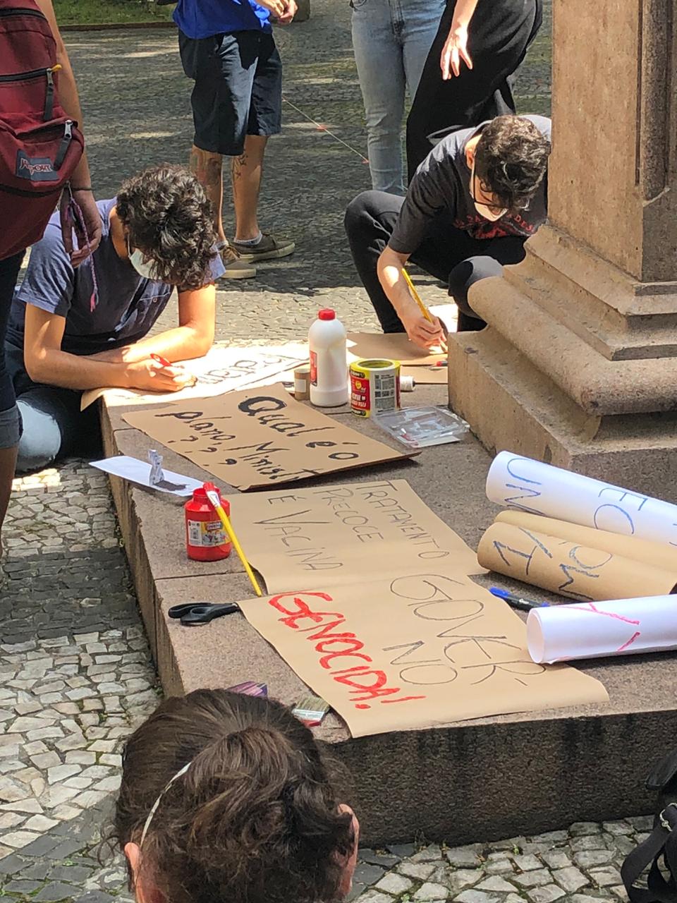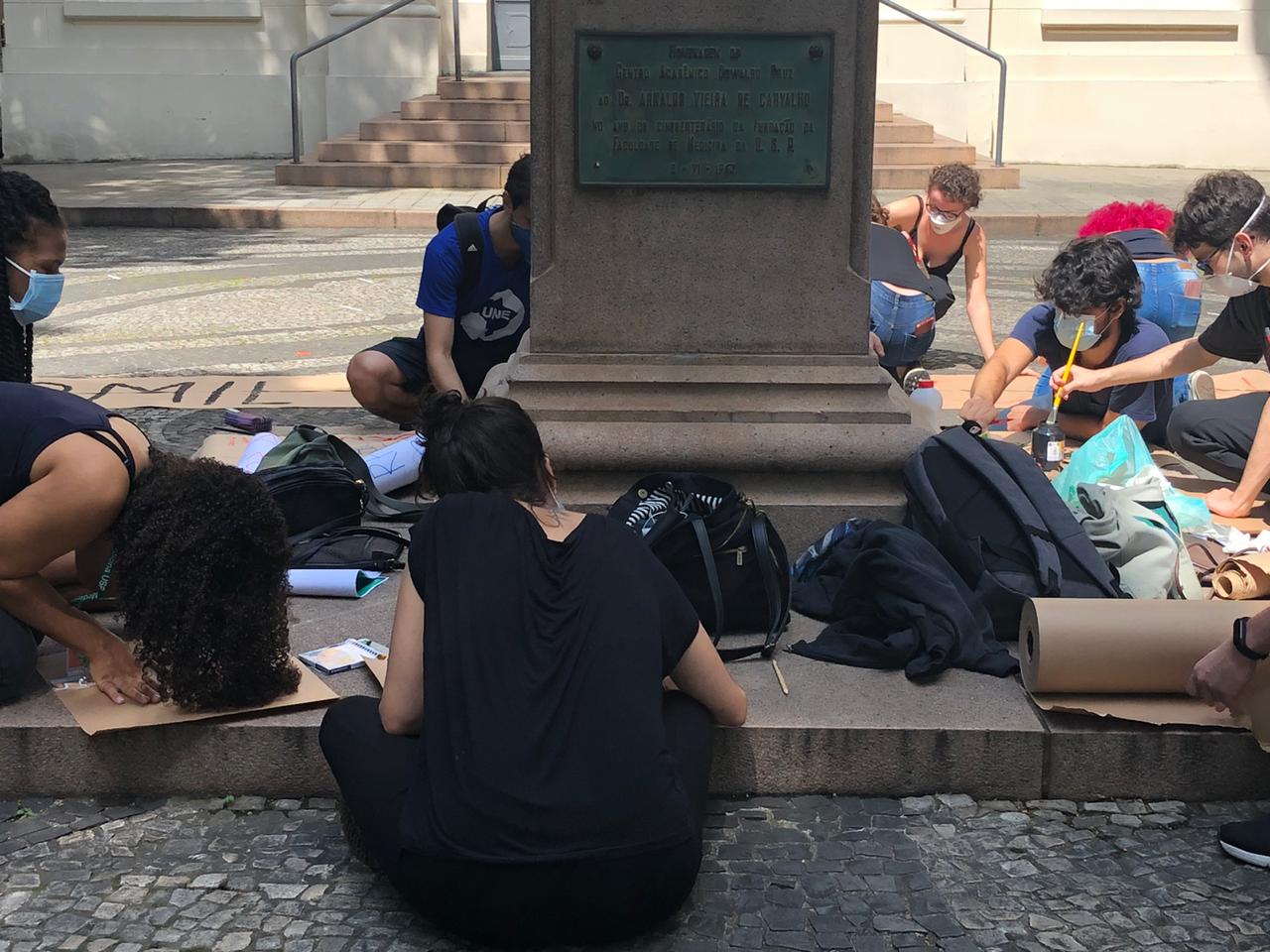 Estudantes decidiram, então, fazer um protesto com distanciamento, todos de máscara e vestidos de preto contra a administração governamental da pandemia.