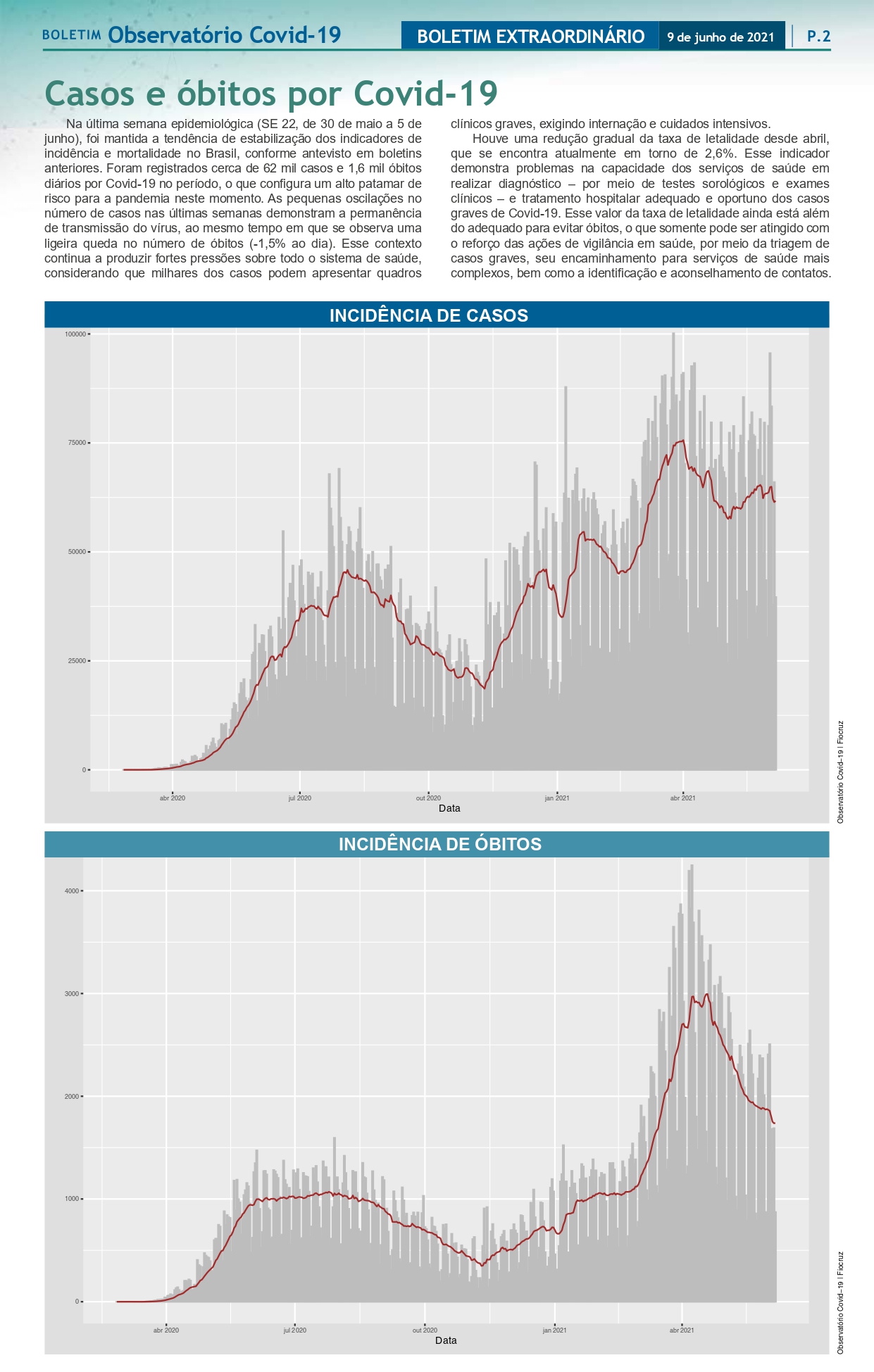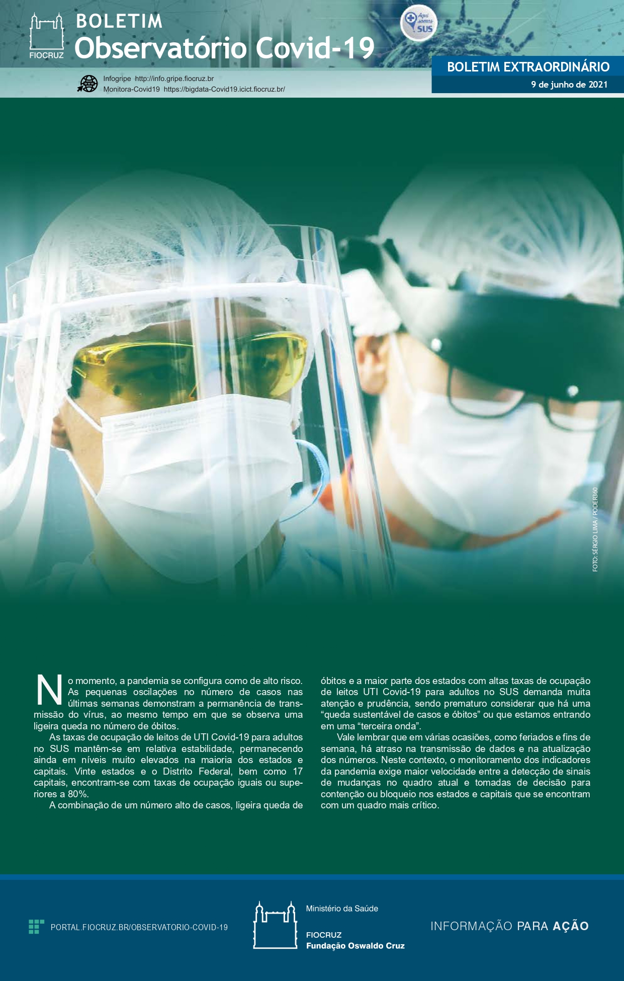 O Boletim do Observatório Covid-19 Fiocruz, divulgado na quarta-feira (9/6), alerta que o cenário atual da pandemia é de alto risco, exigindo muita atenção e prudência (na íntegra, ao final).