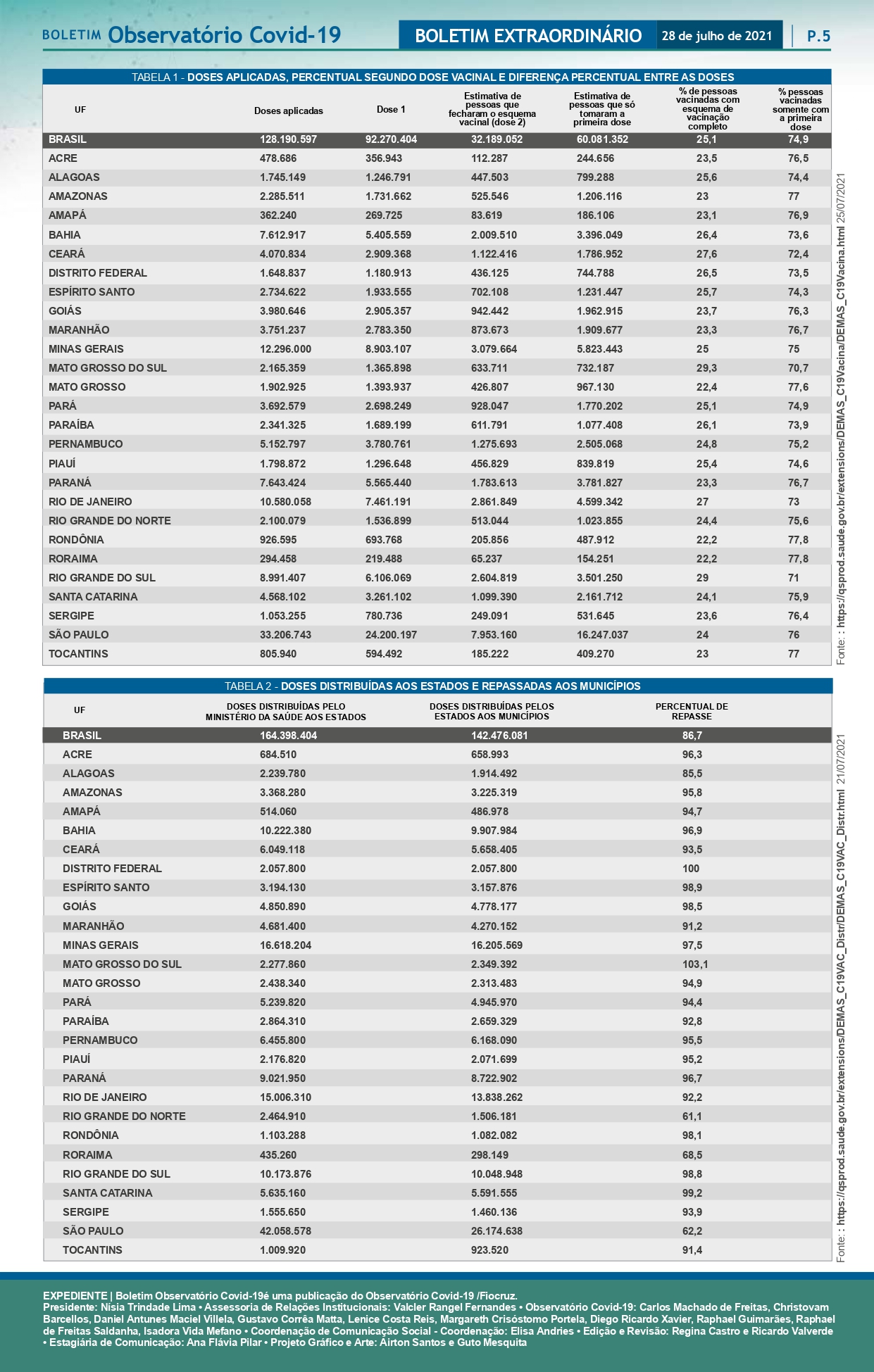Os cientistas do Observatório, no entanto, destacam que a proteção oferecida por uma única dose, com exceção da vacina da Janssen, é muito reduzida em comparação ao regime de imunização completo.