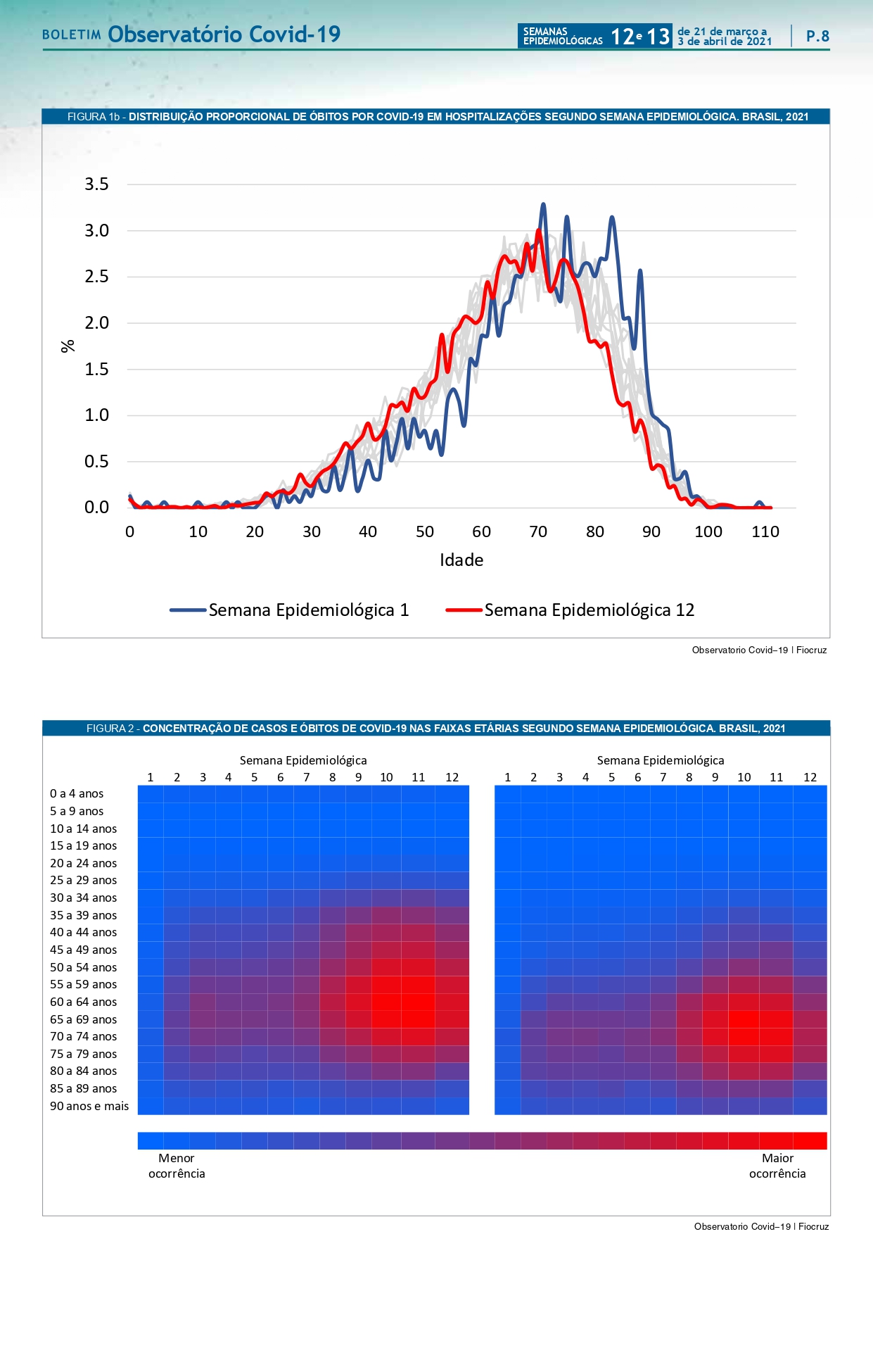Responsáveis pelo Boletim, os pesquisadores do Observatório Covid-19 Fiocruz verificaram que a faixa etária de 20 a 29 anos, que durante a Semana Epidemiológica (SE) 10 teve aumento inferior ao aumento global (256%), após uma atualização dos dados, passou a apresentar crescimento de 876% naquela semana (7 a 13 de março). Agora na análise mais recente (SE 12), o crescimento foi de 740,80%, também maior do que a média global (701,58%).
