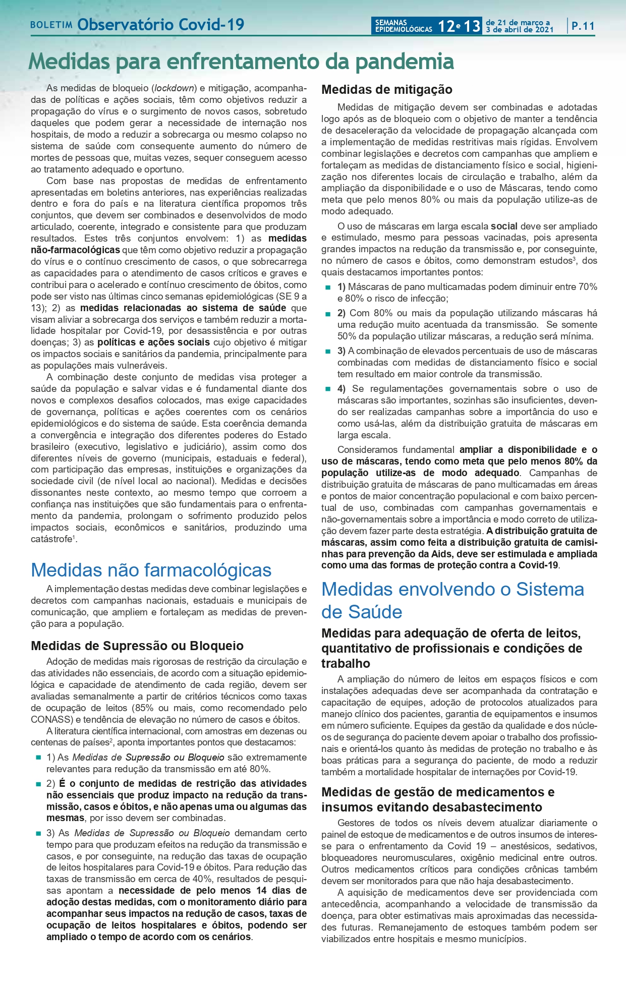 Para enfrentar o atual cenário, os pesquisadores ressaltam que é fundamental a combinação de diferentes medidas, envolvendo as não-farmacológicas, o sistema de saúde e as políticas e ações de proteção e assistência social para redução da vulnerabilidade e do impacto social.