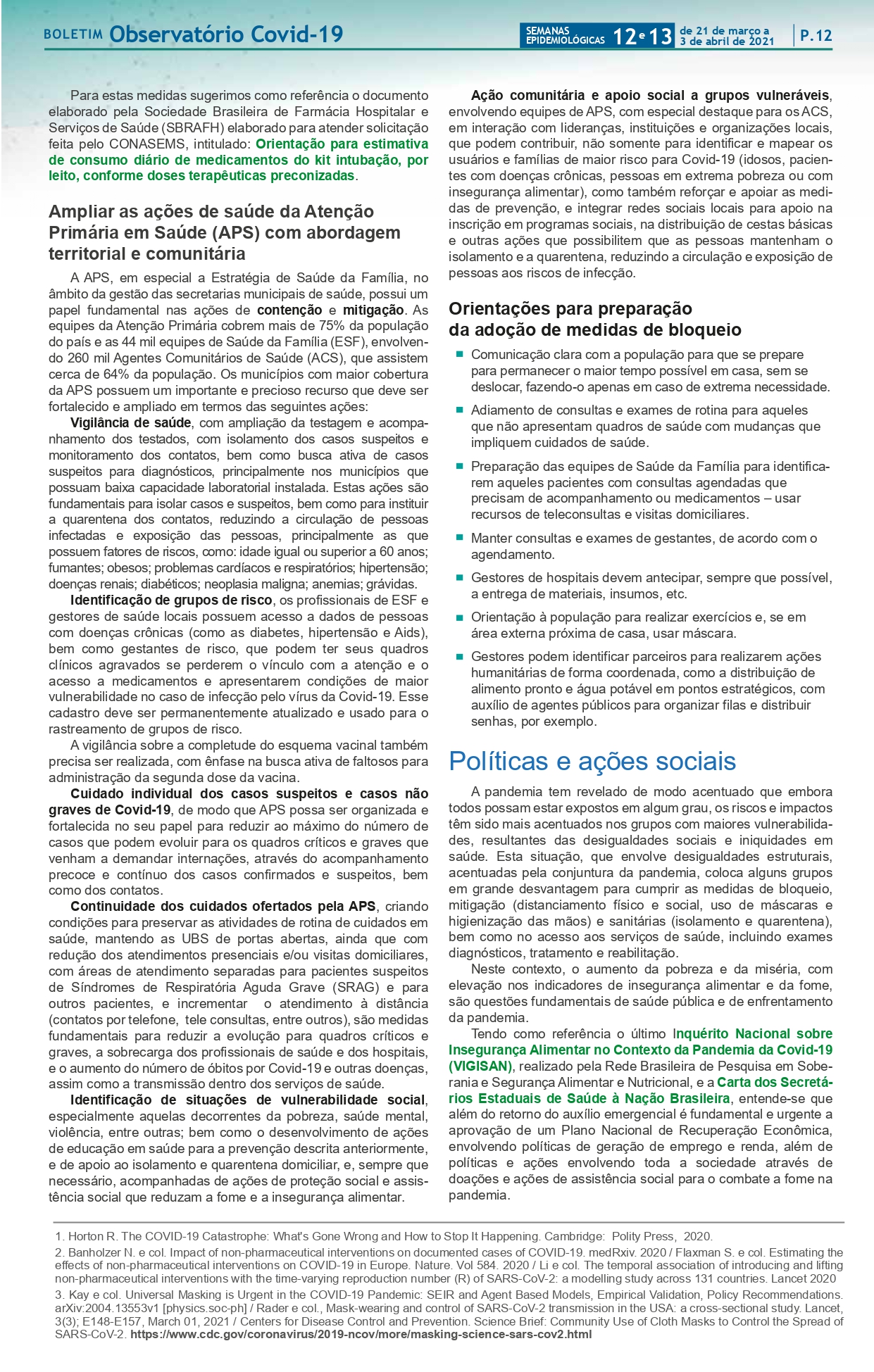 “É preciso que haja convergência e integração dos diferentes poderes do Estado brasileiro (Executivo, Legislativo e Judiciário), assim como os diferentes níveis de governo (municipais, estaduais e federal), com participação das empresas, instituições e organizações da sociedade civil (de nível local ao nacional) para o enfrentamento deste momento bastante crítico e grave da pandemia”, alertam.