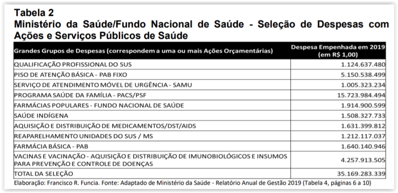 Essas despesas selecionadas na Tabela 2 representam o que a população pode perder em termos de ações e serviços públicos de saúde se esses R$ 35 bilhões perdidos.
