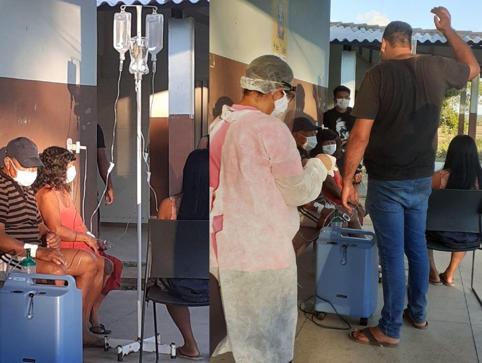 Pacientes no Polo Leonardo aguardam juntos pelo atendimento, contrariando recomendações de distanciamento social