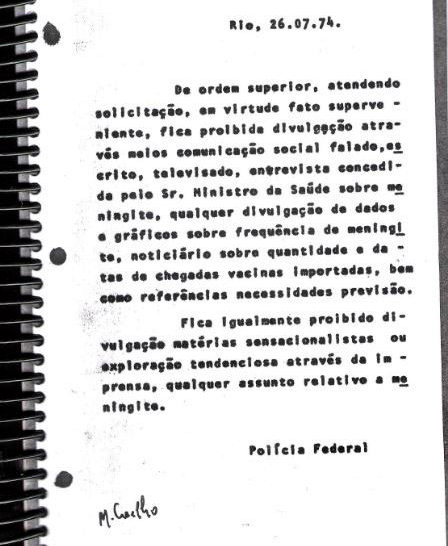 Para estes generais e coronéis no poder – e nunca é demais lembrar, também aos civis que se prestavam a este serviço nos órgãos de censura – , o controle da informação se sobrepunha ao controle da meningite.