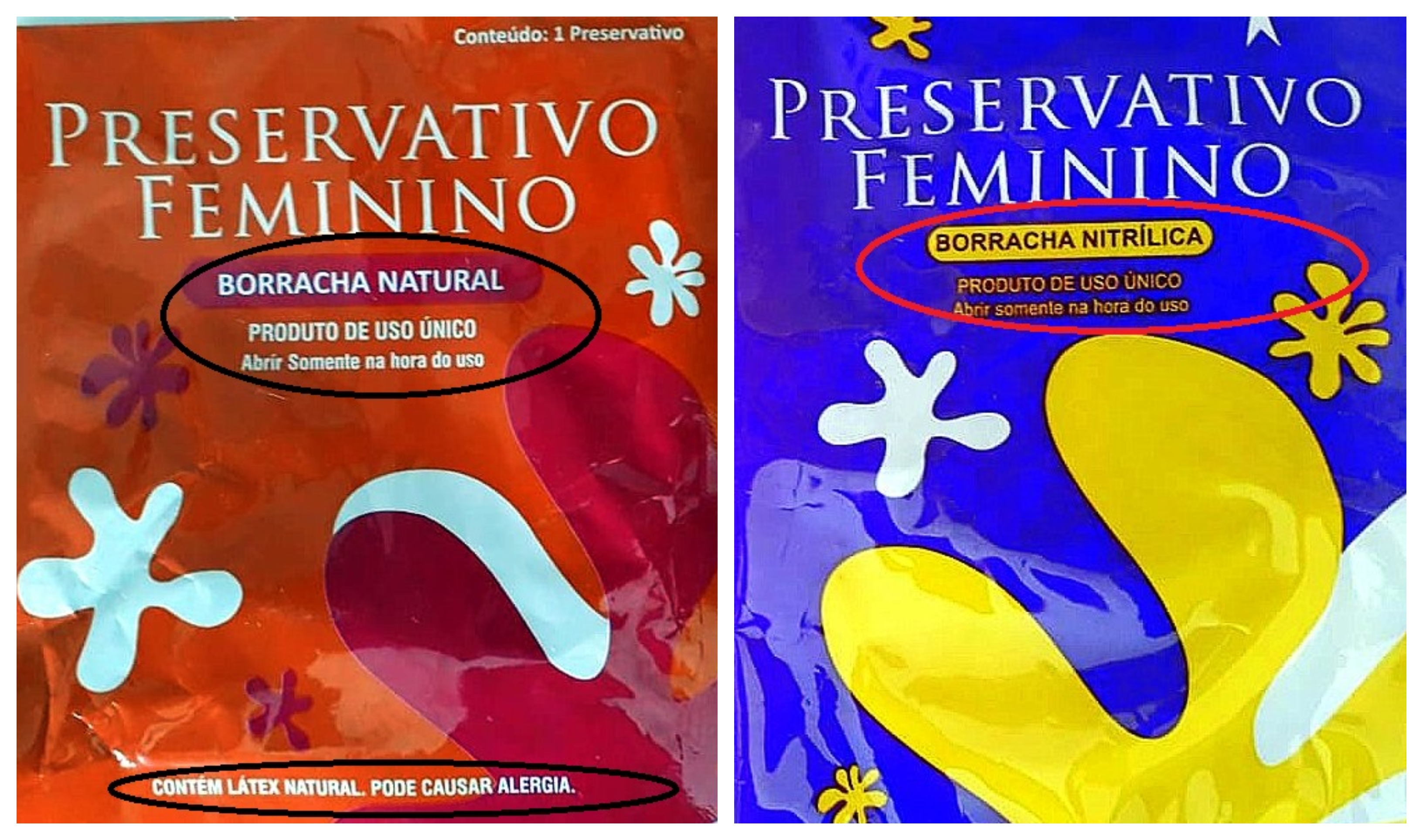 A própria embalagem do preservativo vaginal de látex ofertada no momento, vem com os dizeres: Pode causar alergia