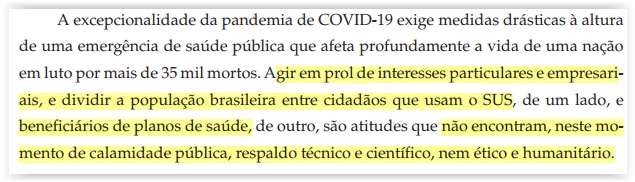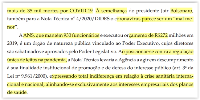 E a “cereja do bolo”:  a ANS se posicionou contra o uso de leitos privados por usuários do SUS com covid-19 durante a pandemia.
