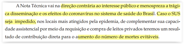 Foi uma resposta à nota técnica da ANS, de 25 de maio, contra o uso de leitos hospitalares privados pelo SUS durante a pandemia.