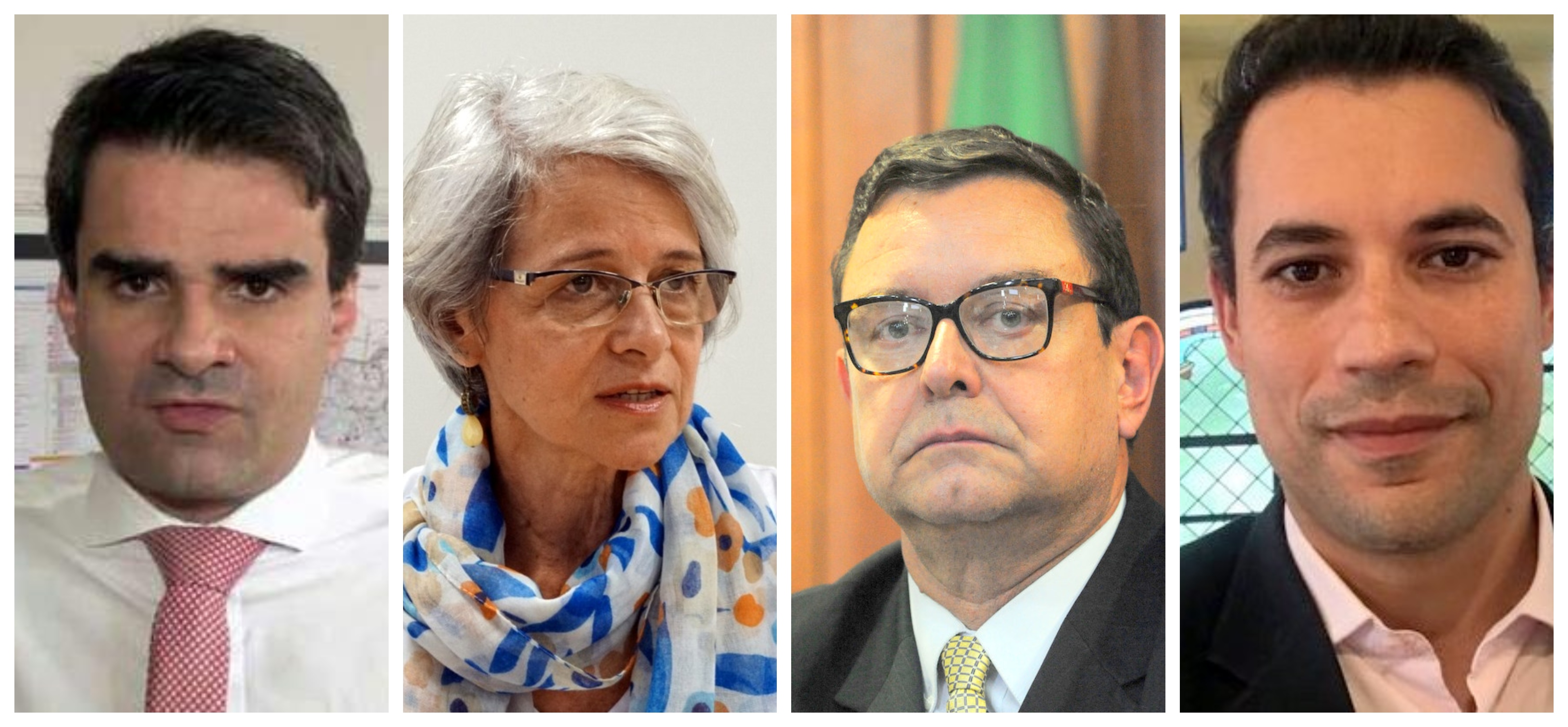 Da esquerda para a direita:  Fábio Ferraz,  secretário da Saúde de Santos (SP), Brigina Kemp e Marco Manfredini, do Cosems-SP, e Gerson Salvador, médico infectologista