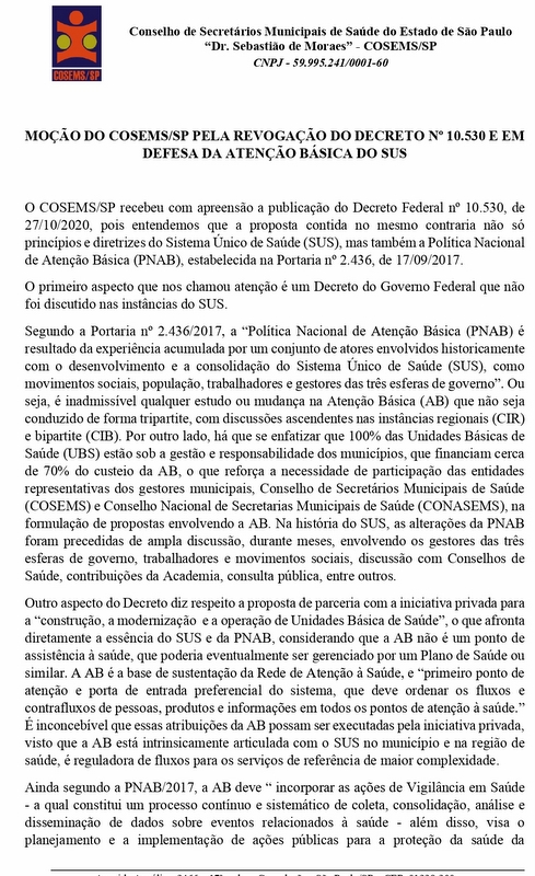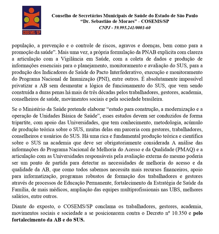 Saúde Secretários Municipais de Saúde de São Paulo conclamam toda a sociedade a se posicionar contra o decreto que privatiza o SUS 28/10/2020 - 15:47 Tempo de leitura: < 1 min Apoie o VIOMUNDO R$ 5 R$ 15 R$ 35 Qualquer valor Siga-nos no