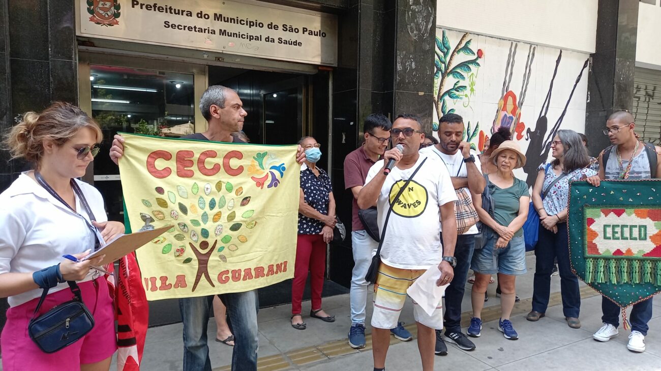 Críticas e vaias de usuários(as) e trabalhadores(as) não foram economizadas no ato em frente à Secretaria Municipal de Saúde, na tarde de quinta-feira (08), para exigir do secretário, Luiz Carlos Zamarco, e do prefeito Ricardo Nunes (MDB), a reposição do déficit de profissionais nos centros de Atenção Psicossocial (Caps), de Convivência e Cooperativa (CECCO) e nos Pontos de Economia Solidária e Cultura que estão sob administração direta.