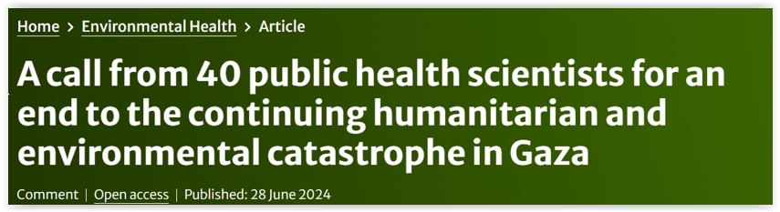 Na última sexta-feira, 28 de junho, a revista Environmental Health publicou manifesto de 40 cientistas da área de saúde pública, que denunciam os crimes cometidos contra a dignidade humana de palestinos na Faixa Gaza e exigem um cessar-fogo imediato.