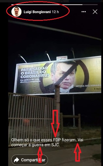 A propaganda teve de ser retirada de veiculação, em São José dos Campos, após pressão de militantes bolsonaristas contra a Emplac, empresa responsável pelo espaço.