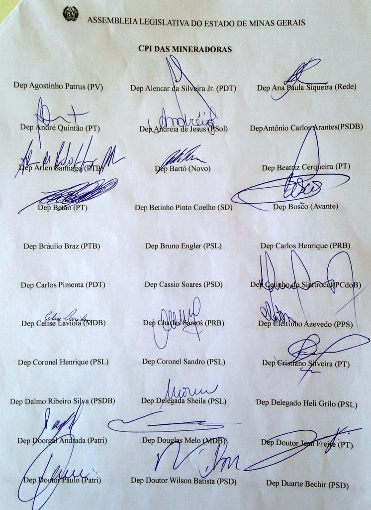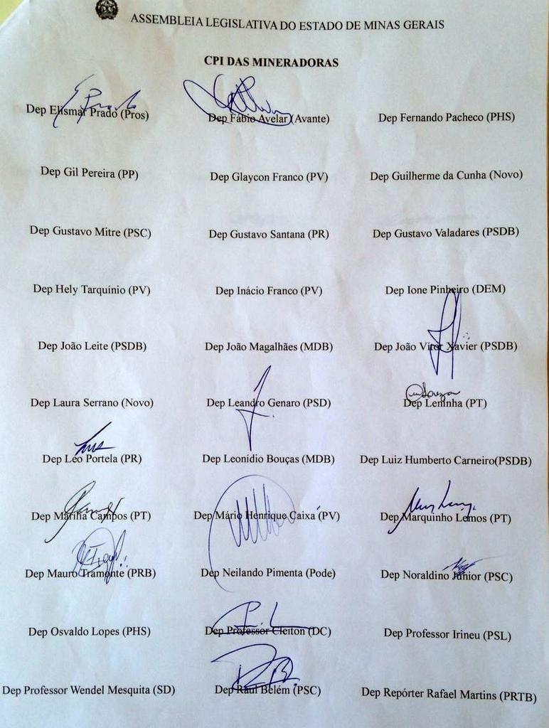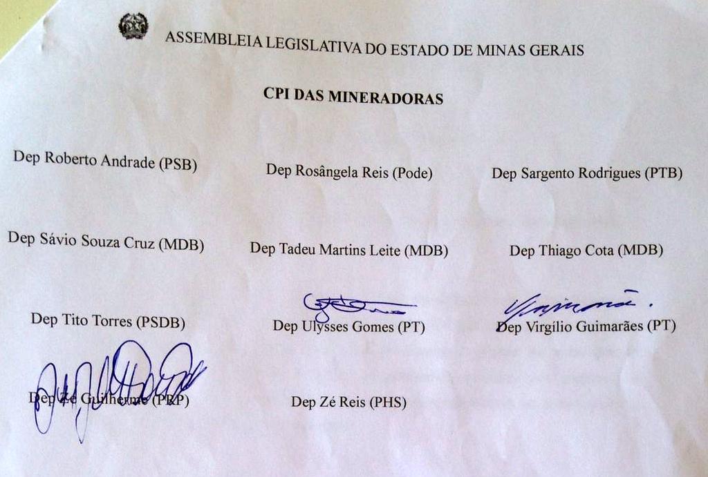 assinaram o Requerimento para instalação da CPI das Mineradoras.