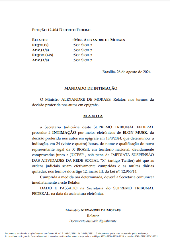 https://noticias.stf.jus.br/postsnoticias/stf-intima-elon-musk-e-x-a-indicarem-representante-legal-em-ate-24-horas-sob-pena-de-suspensao-de-atividades-no-brasil/