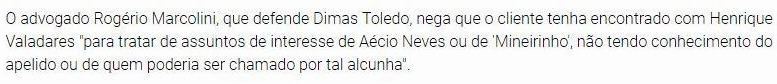 “Que se recorda que, em pelo menos, duas oportunidades, o sr. Henrique Valladares solicitou que ele verificasse a situação dos saldos de pagamentos feitos a Mineirinho; que nestas oportunidades o sr. Henrique Valladares estava reunido com o sr. Dimas Toledo para tratar a respeito desses pagamentos”.