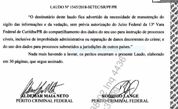 Por fim, por determinação da 13ª Vara Federal de Curitiba, os peritos fazem constar a seguinte informação:
