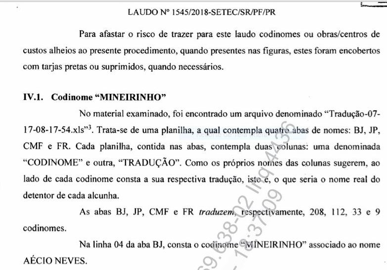 Em tempo. O laudo da perícia da Polícia Federal tem 30 páginas.  Ele diz respeito apenas aos R$ 28 milhões mais US$ 900 mil (em valores atualizados, R$ 57 milhões) que Aécio recebeu em propinas da Odebrecht no projeto Rio Madeira. No finalzinho da 29ª página está escrito: