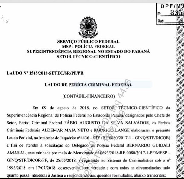 Ki perícia???!!! Os citados documentos não passam de papéis que os DelAtores e a PF dizem ser provas !!!! Palha Assada …