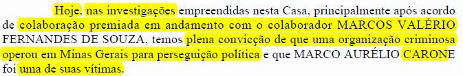 Em relatório ao juiz Haroldo André Toscano, da Segunda Vara Criminal de Belo Horizonte, ele afirmou ter plena convicção de que Carone foi uma das vítimas de uma organização criminosa que operou em Minas Gerais para perseguição política.