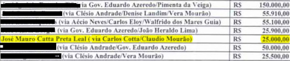 Na época, Catta Preta era procurador do Estado de Minas Gerais e teria recebido R$ 25 mil do esquema, via Carlos Cotta/Cláudio Mourão.