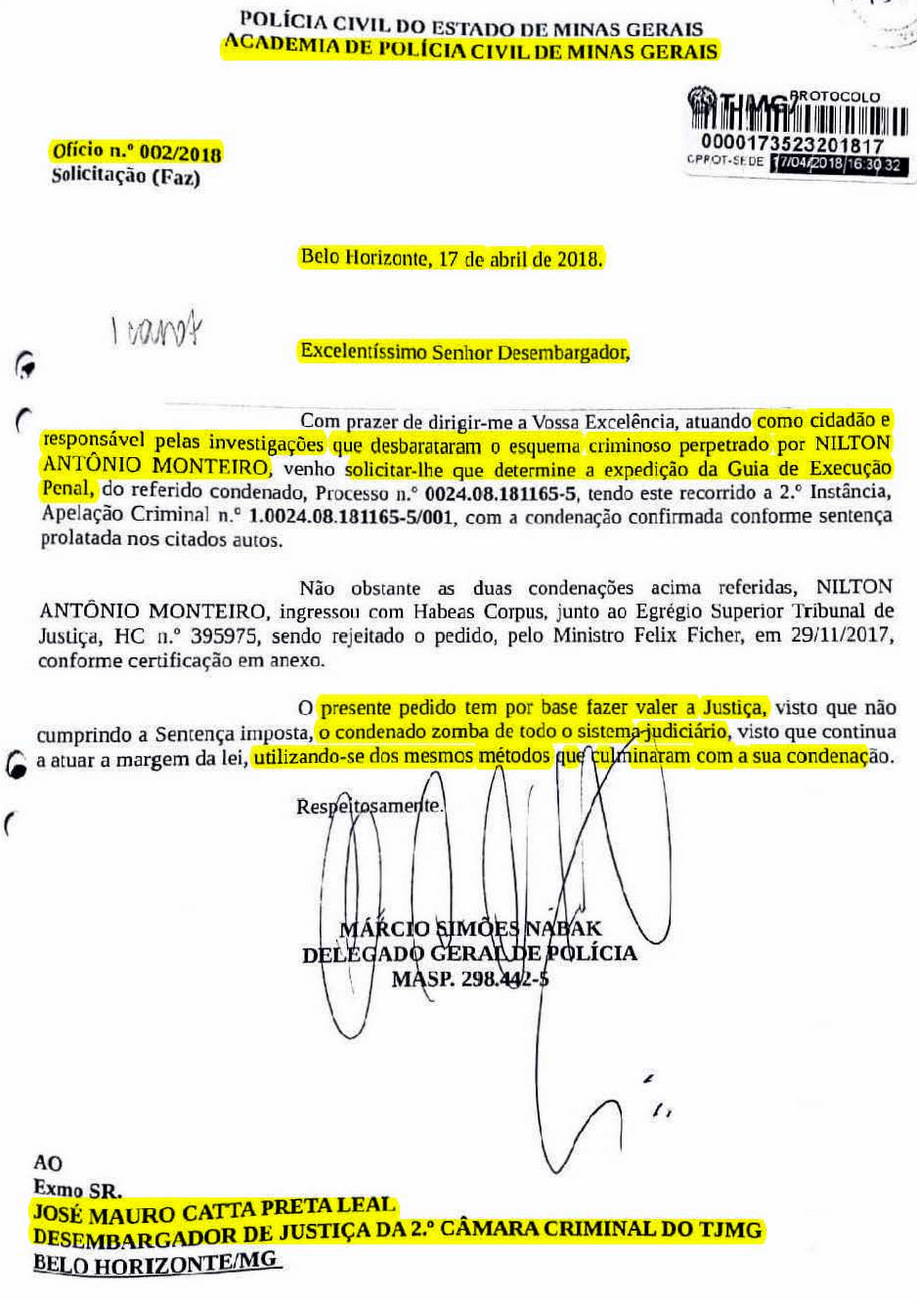 O delegado Márcio Simões Nabak, lotado na Academia de Polícia Civil de Minas Gerais (Acadepol), agiu rápido para ver Nilton Monteiro mais uma vez em cana.