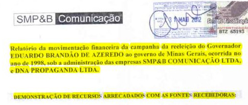 Ela contém os dados da movimentação financeira da campanha de reeleição de Eduardo Azeredo ao governo de Minas, em 1998, como explica no topo da primeira página.