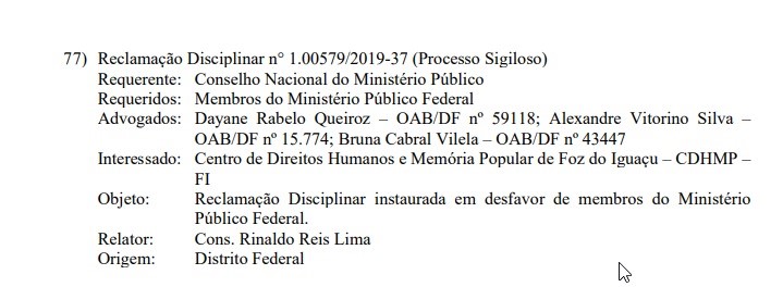 Na convocatória do CNMP, o Centro de Direitos Humanos, entidade da sociedade civil, aparece como parte interessada na Reclamação Disciplinar referente a membros do Ministério Público Federal (MPF).