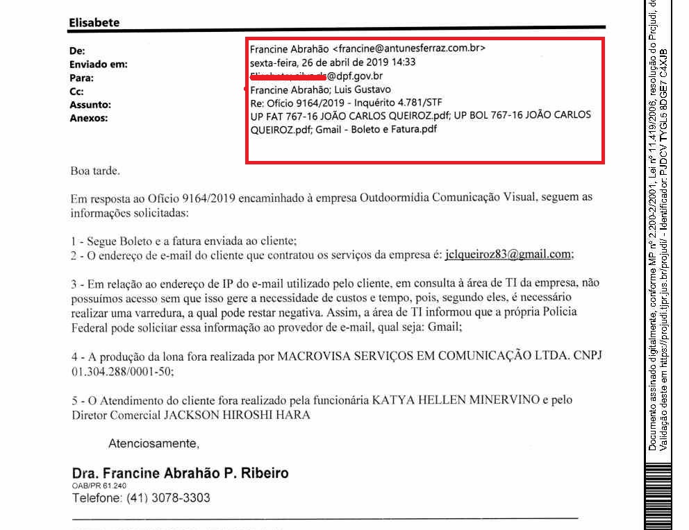 Ivete Caribé da Rocha – Aliás, na justiça estadual do Paraná, há um inquérito em curso provocado pelo músico falsamente indicado como contratante do outdoor. Nele, requeremos que a Outdoormídia apresente todos os documentos mencionados acima pela doutora Tânia Mandarino.