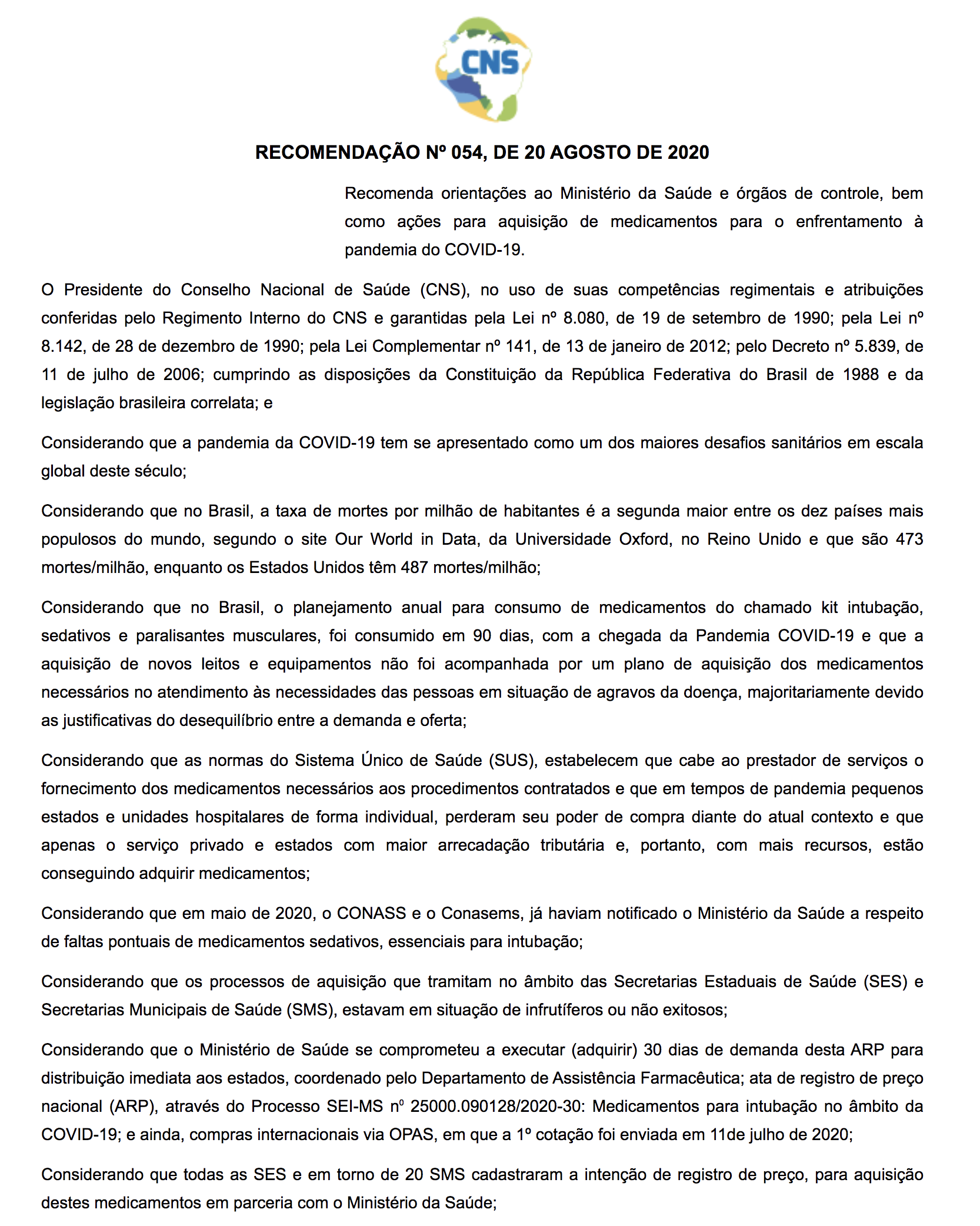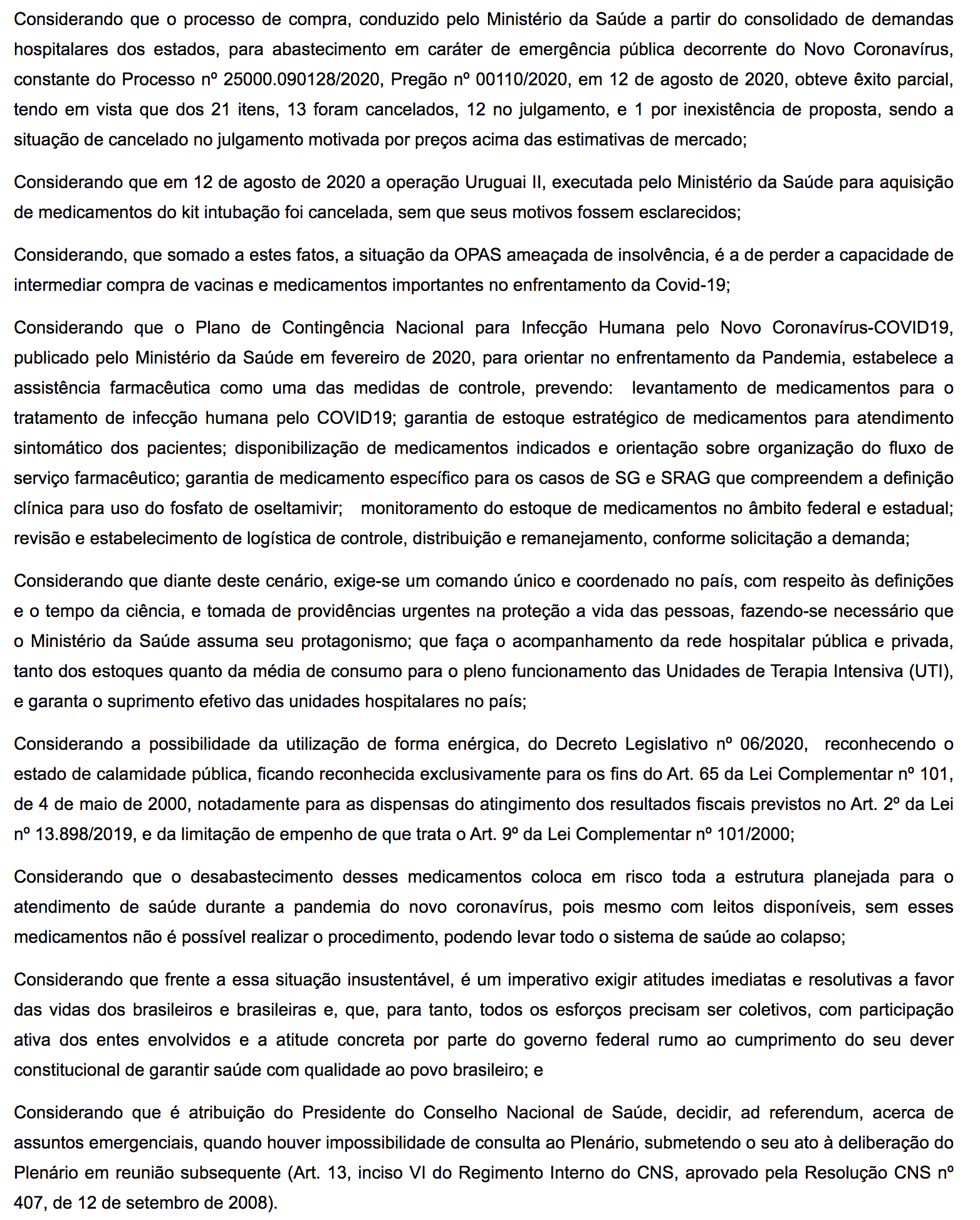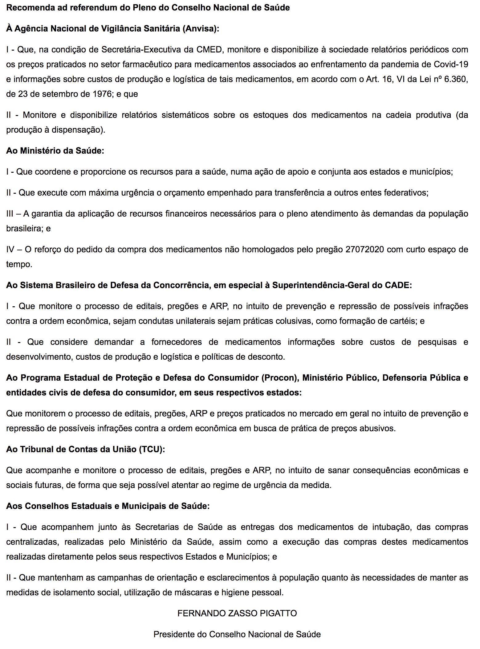 Conselho Nacional de Saúde pediu em 20 de agosto de 2020 que governo comprasse mais kits de intubação, mas não foi ouvido; documento