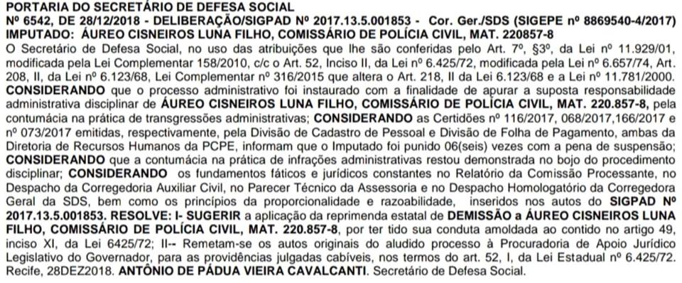 A atuação de Áureo Cineiros Luna Filho à frente do SINPOL/PE incomodou o Governo de Paulo Câmara, do PSB. Assim, foram instaurados 16 PADS contra o presidente do Sindicato.
