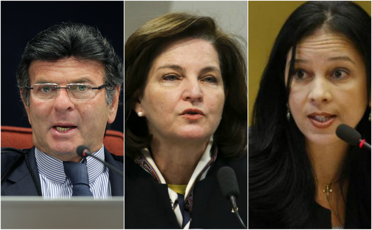 Luiz Fux, ministro do STF, Raquel Dodge, procuradora-geral da República/MPF, e Grace Mendonça, chefe da AGU. Fotos: STF e Agência Brasil