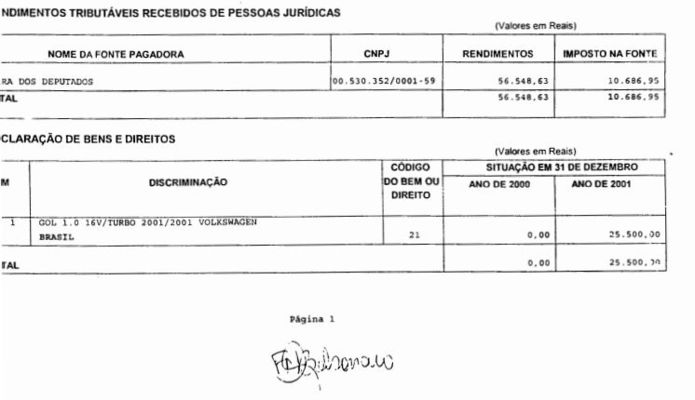 Declaração do Imposto de Renda de Flávio Bolsonaro do ano de 2001