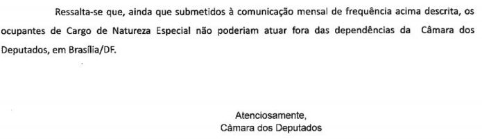 Declaração oficial da Câmara sobre o exercício de cargos de natureza especial fora de Brasília