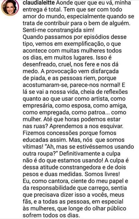 Nesta segunda-feira (12/11), Claudinha postou no instagram um longo desabafo.