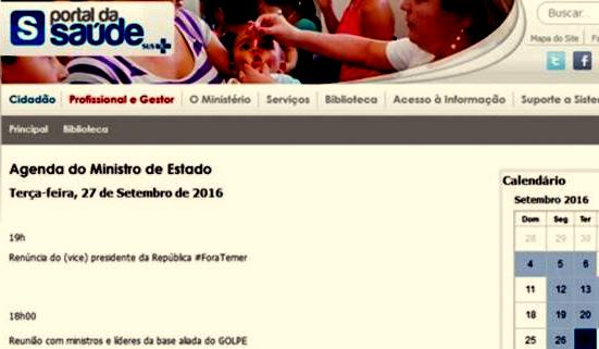 Em 27 de setembro de 2016, deu na mídia: Hackers invadem site do Ministério da Saúde e incluem dois eventos inusitados na agenda do ministro.