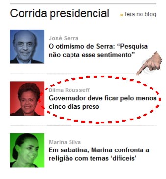 O link leva à notícia da prisão do governador do Amapá, do PP. Será que eles querem que os leitores/internautas pensem que o governador era do PT? o que isso tem com a campanha de Dilma?