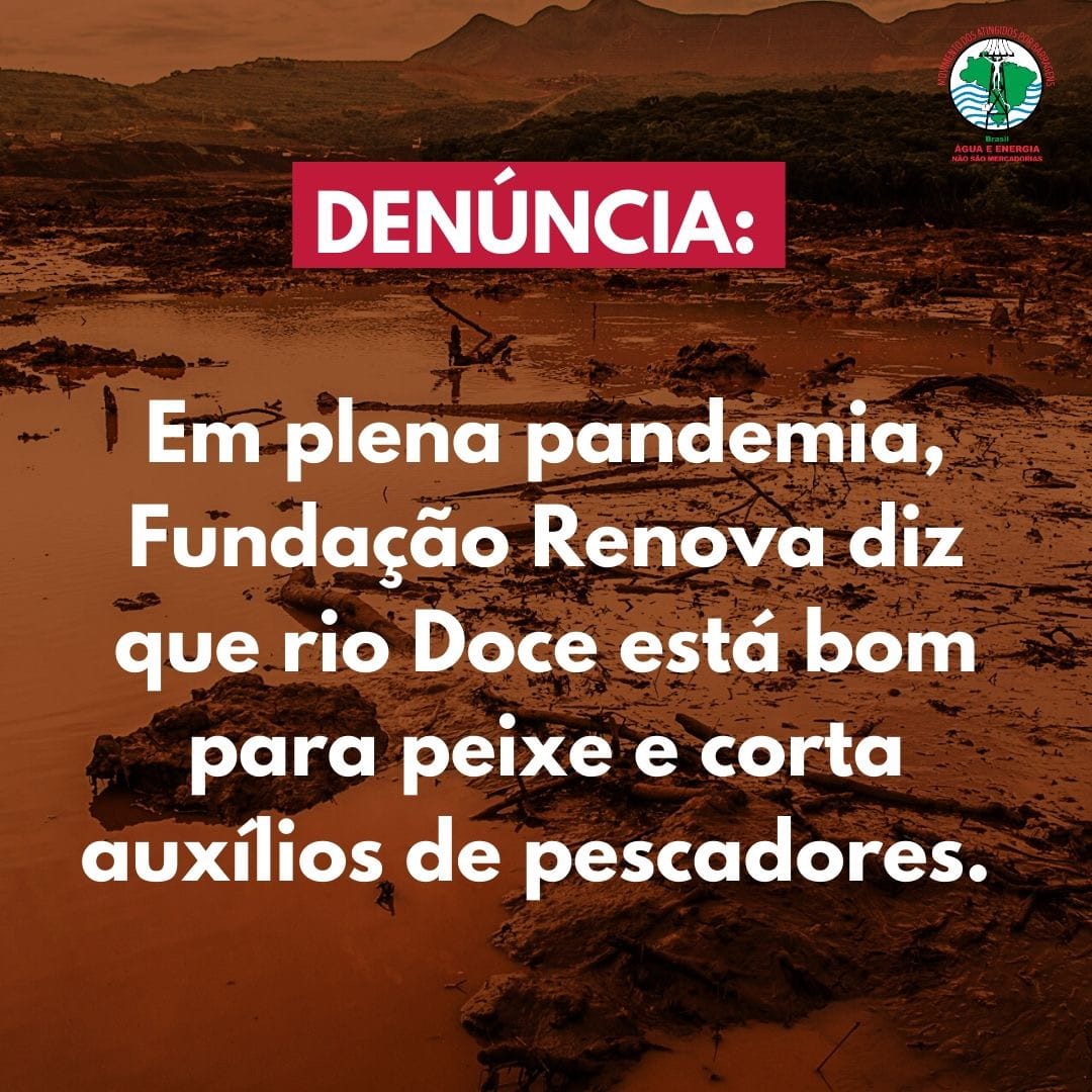 É preciso reafirmar que, ao fazer isso, a Fundação Renova joga milhares de pessoas em uma situação de insegurança alimentar e nutricional em plena pandemia que já matou quase 60 mil pessoas no Brasil em quatro meses.