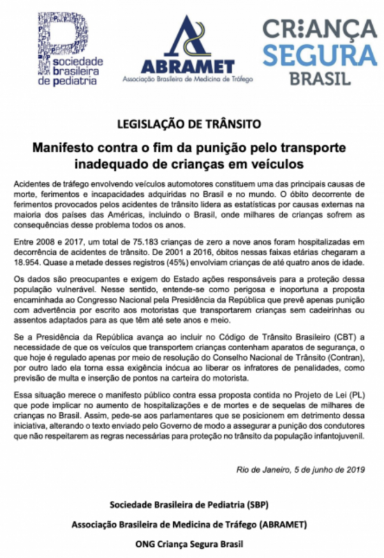 Manifesto: 75.183 crianças foram para o hospital por causa de acidentes de trânsito em um ano