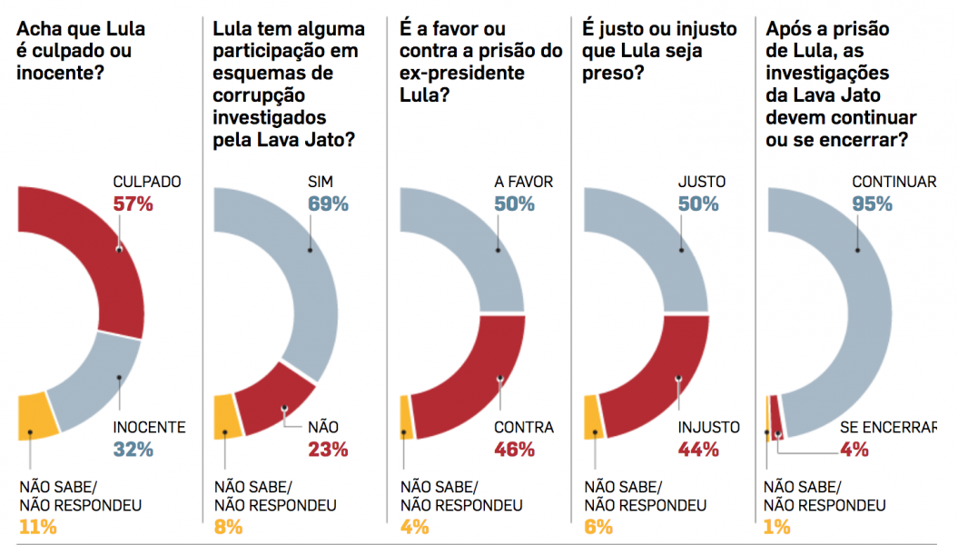 A pesquisa foi feita já sob o impacto da prisão de Lula em Curitiba.