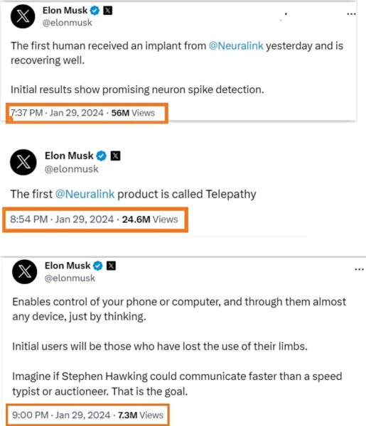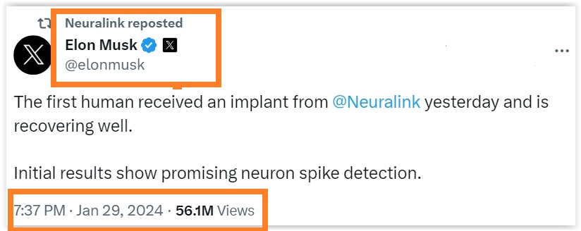 A Neuralink restringiu-se a repostar o primeiro tuíte do seu dono.